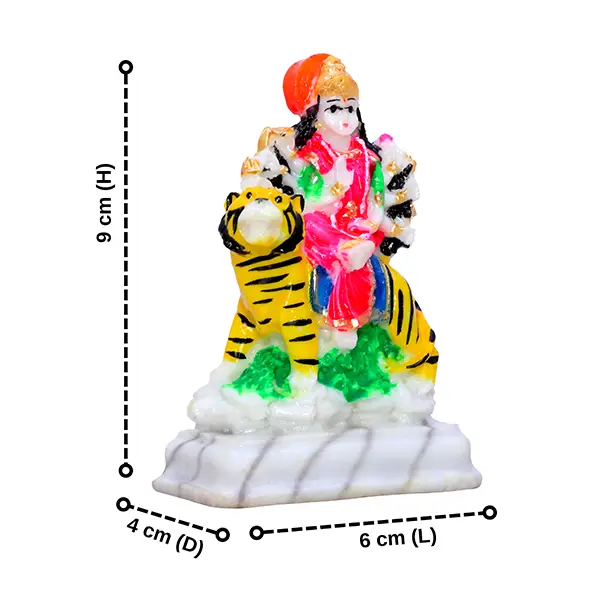 Invoke the divine power and grace of Goddess Durga with this exquisitely crafted idol. Seated majestically on her tiger, Maa Durga symbolizes strength, protection, and divine feminine energy. Made from high-quality resin and hand-painted with intricate details, this idol is ideal for home temples, puja rooms, or spiritual decor. A perfect gift for religious occasions, Navratri celebrations, and housewarmings.